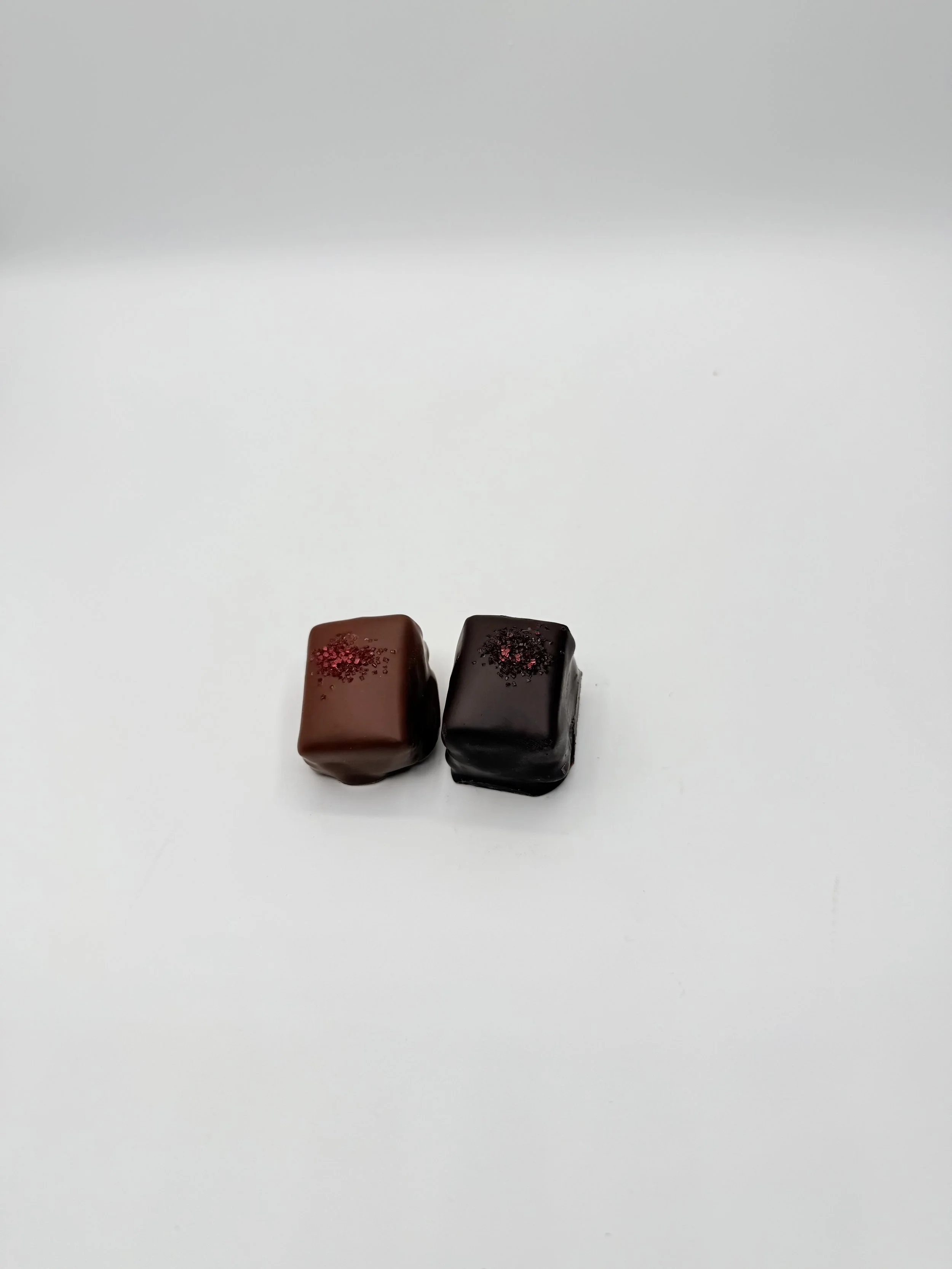 Pectine, Suiker, frambozenpuree, glucosesiroop, invertsuiker, cacao boter, hazelnoot, feuilletine, melkchocolade (suiker, cacaoboter, volle melkpoeder, cacaomassa, emulgator: sojalecithine, vanille-extract).
