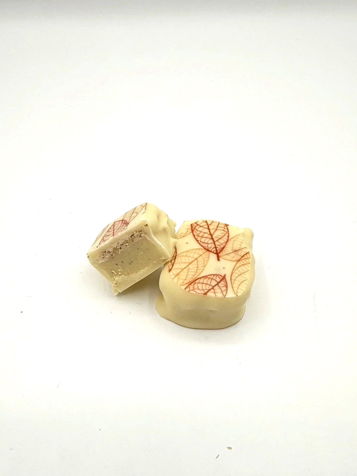 Deze vanille-frambozen bonbon smelt zacht op je tong met een romige, volle vanillesmaak. Knapperige stukjes gevriesdroogde framboos zorgen voor een frisse, fruitige bite die de zoetheid perfect in balans brengt. Zacht, fris en verleidelijk — een bonbon waar je meteen een hap van wilt nemen.